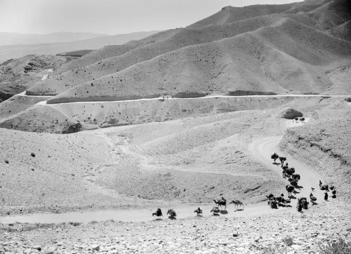Караван мулов и верблюдов держит путь в Кабул через перевал Латабанд, 8 октября 1949 года.