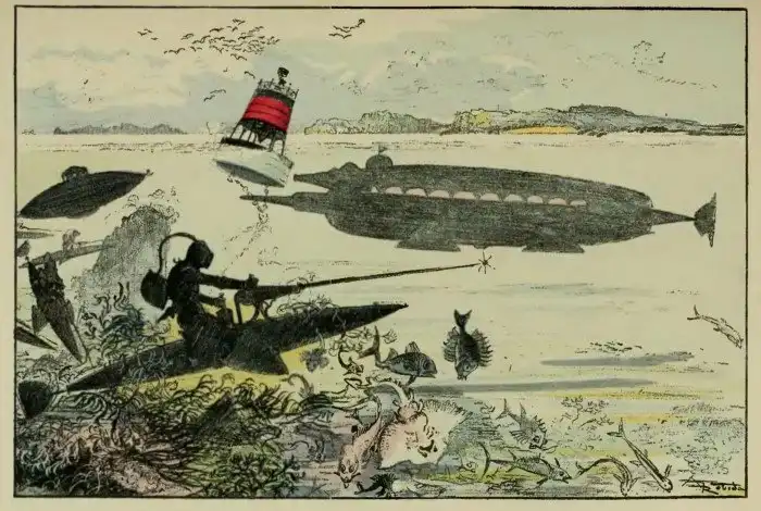 В принципе, термин «ретрофутуризм» полностью соответствует такому определению. Это искусство, в котором описывается мир будущего, которое базируется на технологиях, моде и стилистике прошлого, устаревших в реальном времени.Конечно, раньше это было просто «футуризмом». И в начале своего существования – наивным и порой даже нелепым.Вообще, под понятие «ретрофутуризм» попадает также стимпанк и дизельпанк, в которых технологии пересекаются с невозможным будущим. Но они появились куда позже.Прежде всего на ретрофутуризм как таковой повлиял Жюль Верн: он описывал подводные лодки, небоскребы, электромеханические калькуляторы, факс и даже оружие с дистанционным управлением. И за ним последовали и изображения. Например, художник Альбер Робида часто изображал летающие машины и электропневматические поезда.