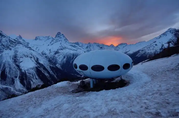 А среди реализованных проектов – это, наверное, домбайская «Тарелка», построенная еще в 1969 году. Это маленький дом на 8 мест, некоторое время он находился в Финляндии, а позже его подарили СССР в знак дружбы. Оттуда он и уехал на Домбай. Такие здания есть и в Белэкспо в Минске и пансионат «Дружба» в Мисхоре под Ялтой.