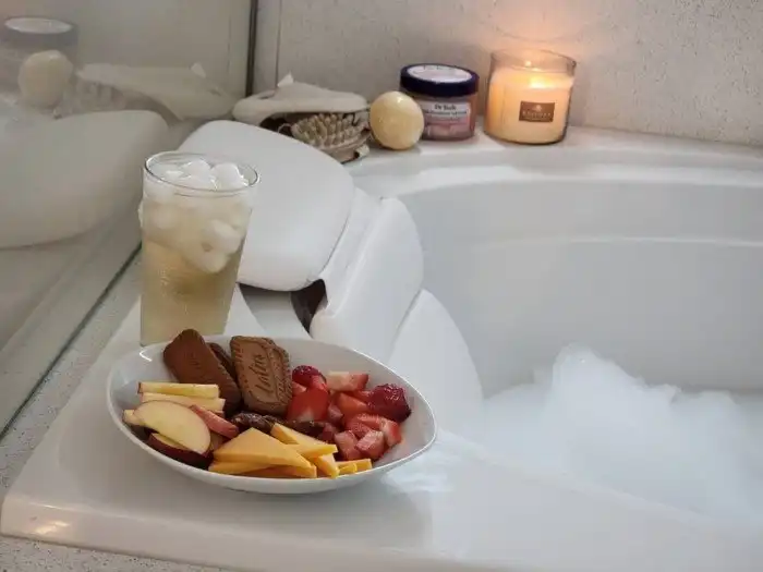 Моя жена проснулась в 2 часа ночи и пошла в поход с горы с друзьями. Сейчас она едет домой и скорее всего думает, что дома ей придётся заниматься с детьми. Вместо этого она будет отдыхать в ванной.