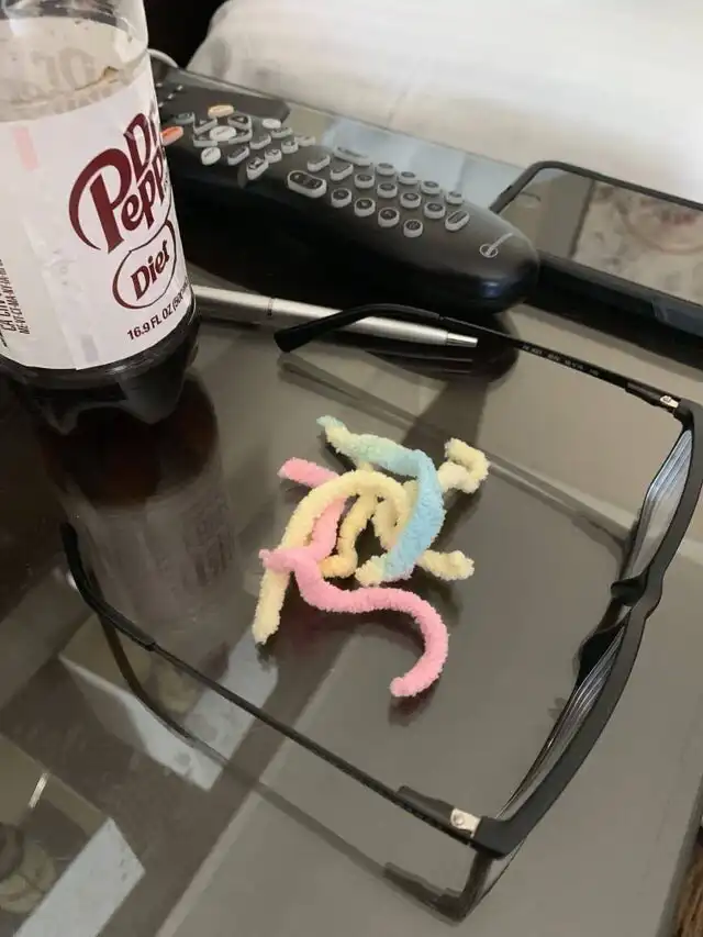 Муж чуть не съел этих мармеладных червячков, которые на самом деле являются остатками пряжи