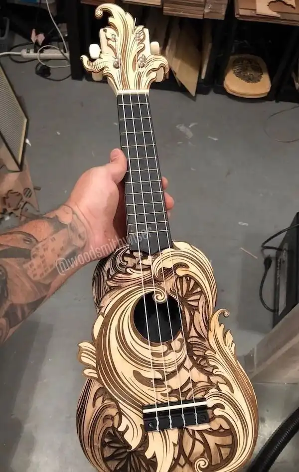 "С помощью лазерного резака и граверного резца я сделал вот такую необычную укулеле"