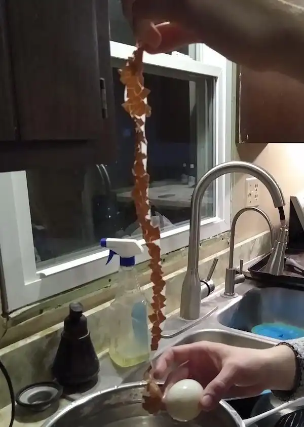 "Моя жена сумела снять скорлупу с яйца одной лентой"