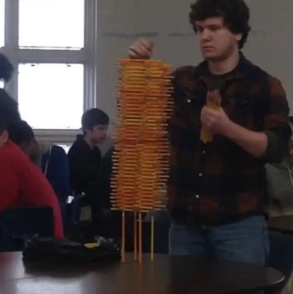 "Один парень в нашей школе любит и умеет строить башни из карандашей"