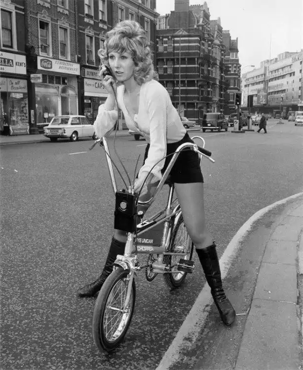 16. Велосипед Raleigh Radiotelephone Chopper на выставке Ideal Home в Олимпии, Лондон, март 1971 года