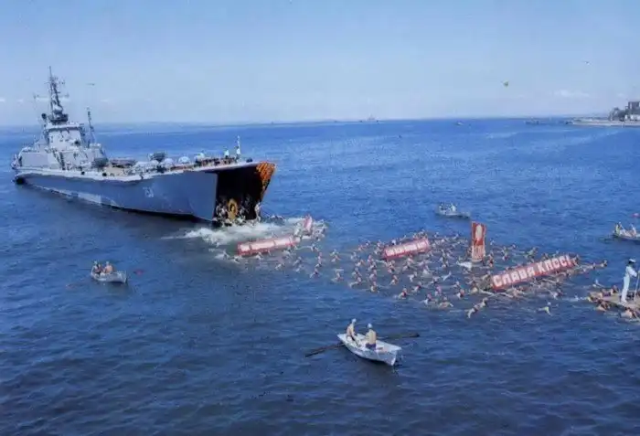 25. Десантируемая праздничная демонстрация. Из альбома Океанский щит Страны Советов (1987). СДК проекта 771. Владивосток. Амурский залив