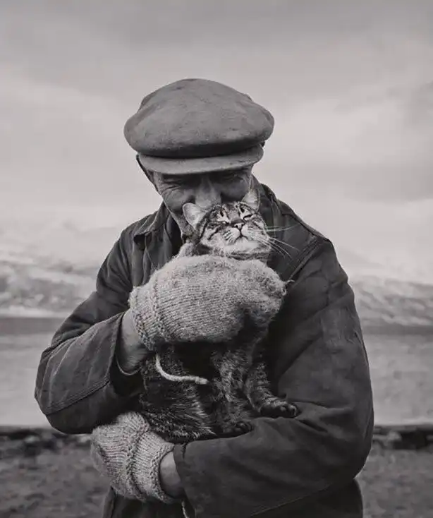 38. Норвежский рыбак с котейкой. Деревня Шиботн, Норвегия, 1967. Фотограф Исмо Хёльттё (Ismo Hölttö)