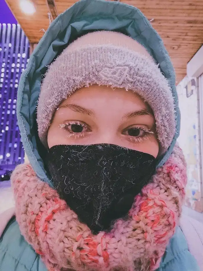 Архангельск в прошлом году.-33 днём, ночью все -40. Фото сделала через 3 минуты после выхода из дома