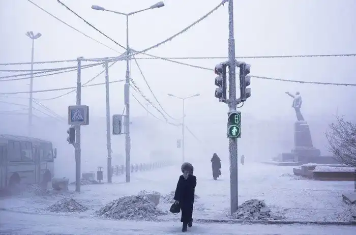 Снимать при таких условиях было тяжело. Фотограф говорит, что его техника отказывалась работать, зум замерзал. Однако фото все-таки были сделаны. На них - Оймякон и Якутск.
