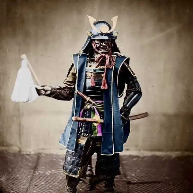 Кобото Сантаро, японский военный командир, одетый в традиционные доспехи. Фото 1863 года, Феличе Беато