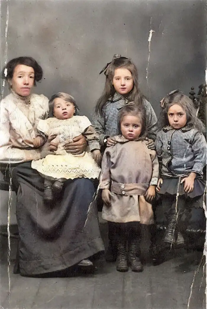 49. "Моя прабабушка (ткачиха из джута) и ее дети. Данди, Шотландия, 1915 г."