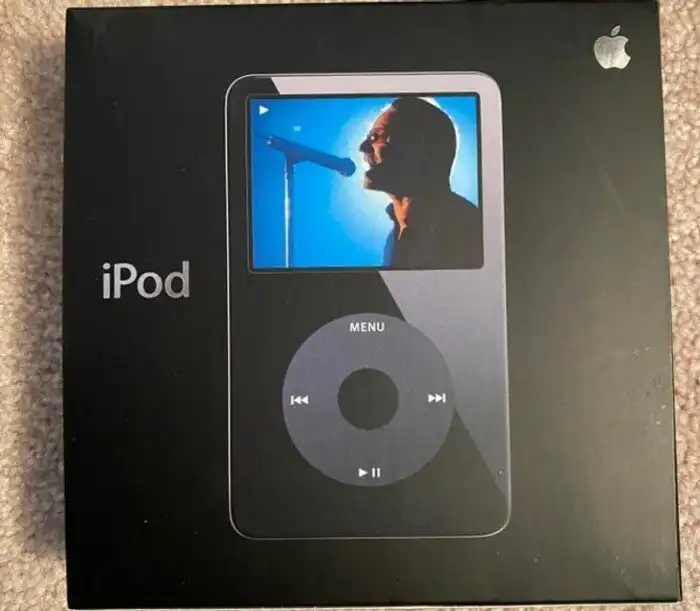 «iPod середины 2000-х. Думаю, это был подарок семьи в 2005 году. Глядя на картинку, я буквально слышу, как Боно кричит: „Yeah, yeah, yeah!“»