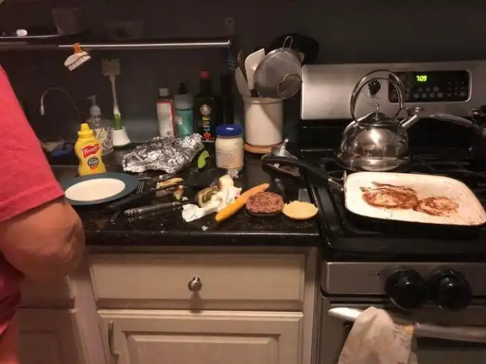 «Свекровь делает у меня на кухне бургер с индейкой. Кому нужна разделочная доска, если можно готовить еду прямо на столешнице?»