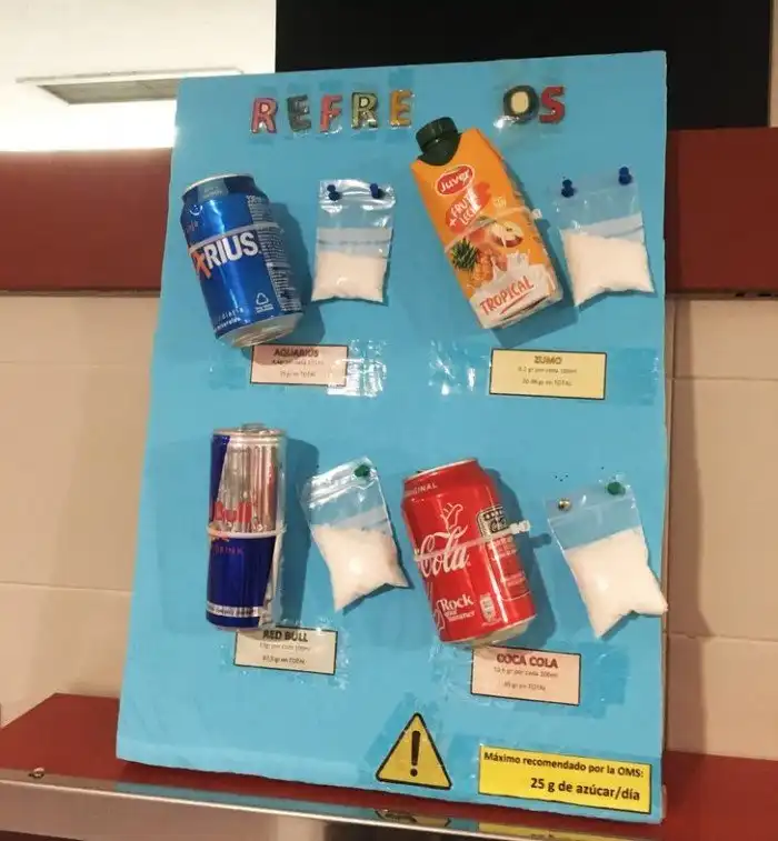 21. На стене в поликлинике висит стенд, демонстрирующий содержание сахара в каждом безалкогольном напитке