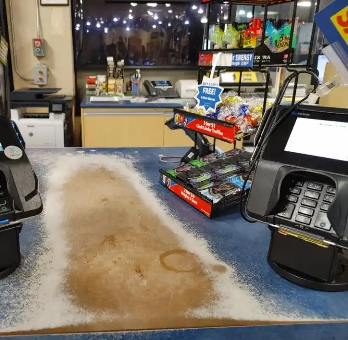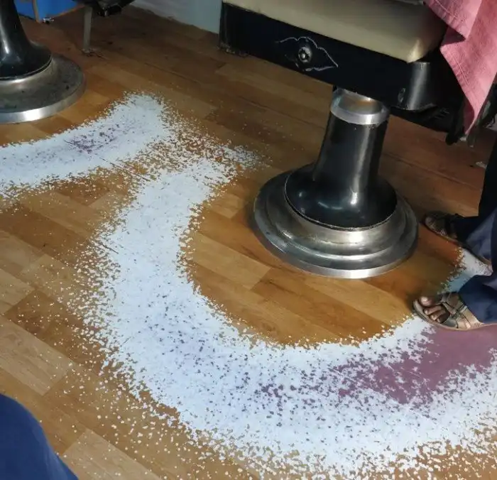 Износ напольного покрытия вокруг кресла в парикмахерской