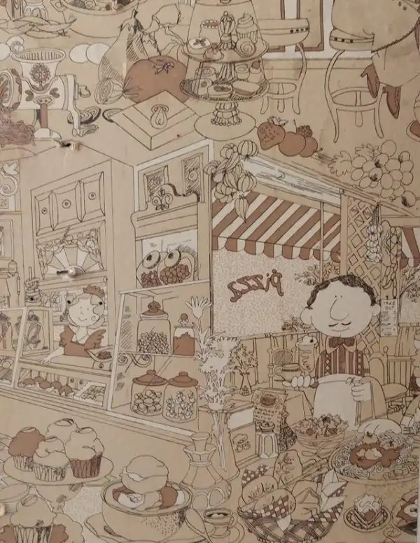 Всё это время за нашим кухонным шкафом прятались такие обои
