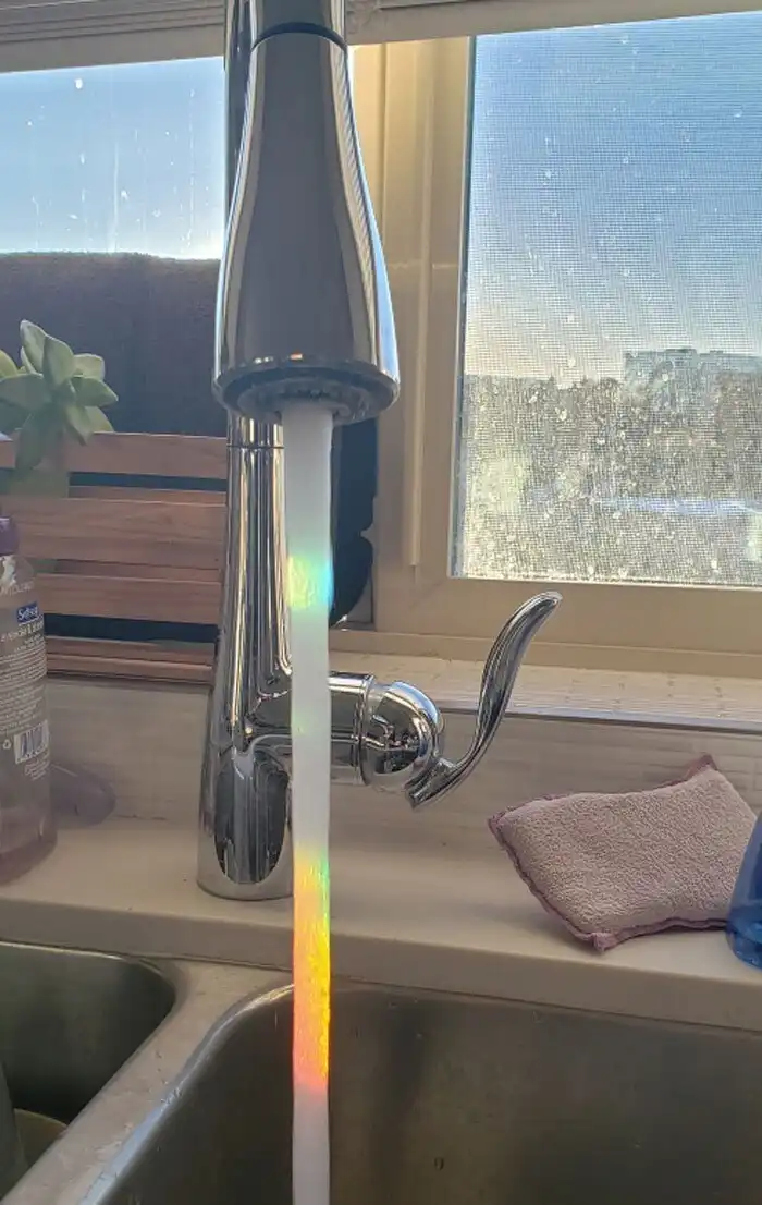"Солнце светит так, что сделало радугу в воде из-под крана"