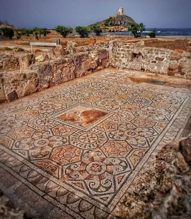 Великолепная римская мозаика из археологического парка Нора на юге Сардинии, Италия.