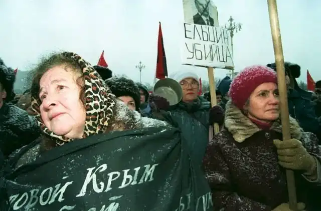 Женщины на коммунистическом митинге, посвященном первой годовщине принятия Конституции. 12 декабря 1994 года.