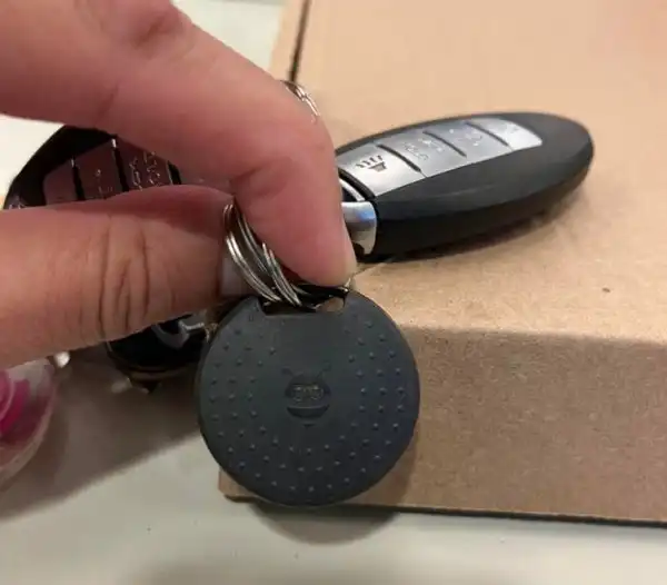 Ответ: это трекер, который помогает найти ключи в случае их потери. Если активировать его через Bluetooth, он будет издавать шум.
