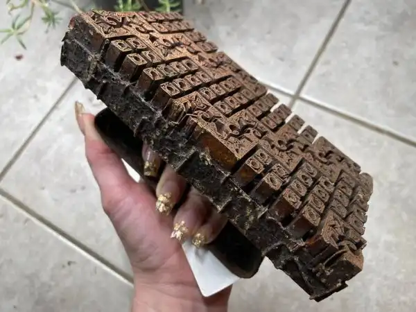 Ответ: это индийский штамп для ткани, с его помощью наносят орнамент на шелк.