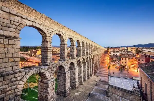 Римский акведук в Сеговии, Испания. 24000 гранитных блоков скреплённых без строительного раствора примерно в 100 году нашей эры.