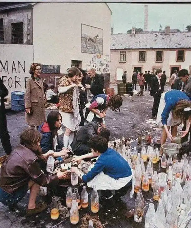 4. Историческое фото: 1969 год, город Дерри, простые ирландские девушки готовят «коктейли Молотова» во время битвы при Богсайде. Эта комбинация с простыми девушками и воспламеняющимися смесями потом ещё много где будет фотографироваться.