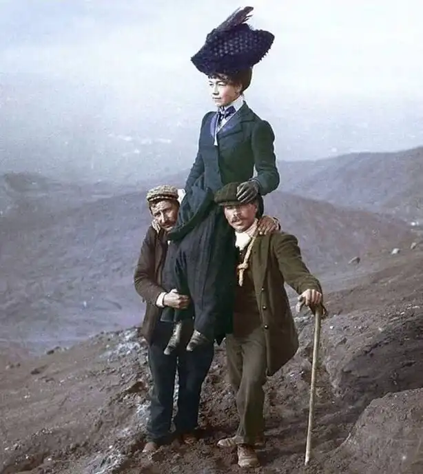 26. Горные гиды несут дамочку, возжелавшую взойти на Везувий в 1910 году