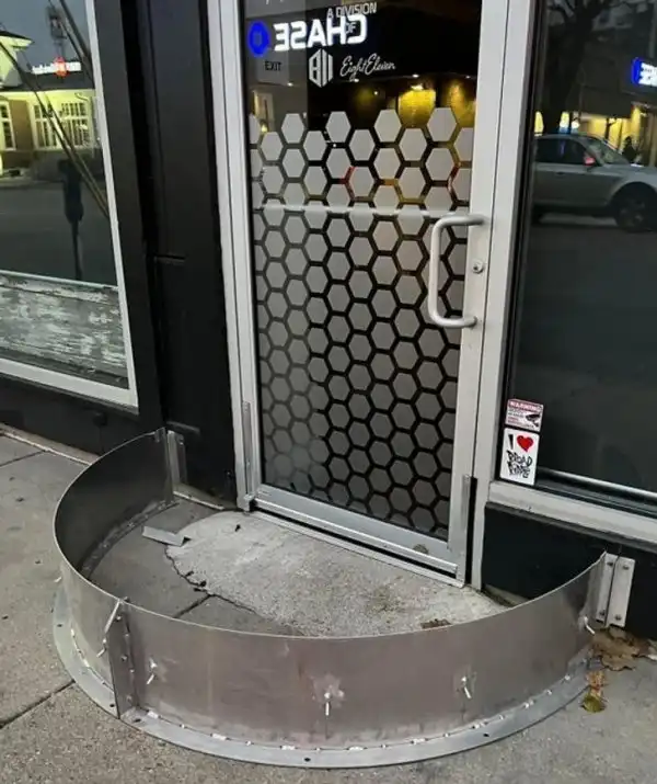 Это барьер от наводнений, чтобы в период сильных дождей вода не заливала двери. Раньше для этой цели использовались мешки с песком.
