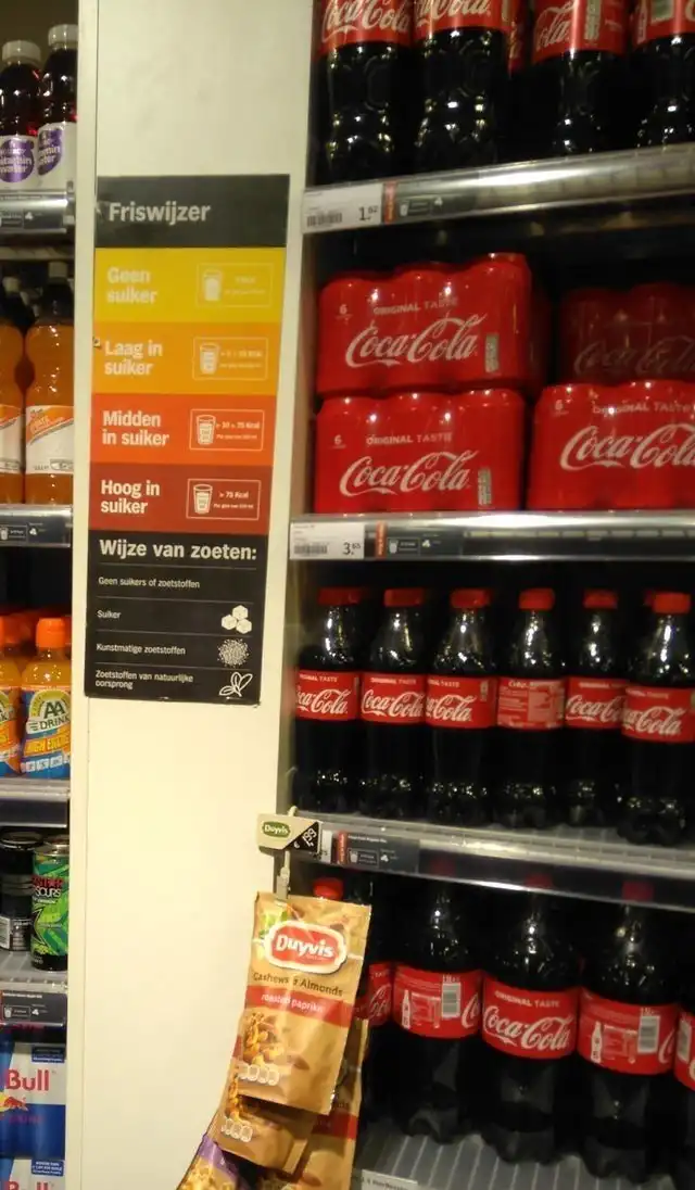 Эта табличка показывает, сколько сахара в напитках