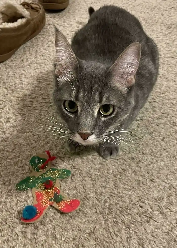 4. "Весь день лежал в постели больной. Мой кот Артур принес мне рождественское украшение с елки в подарок"