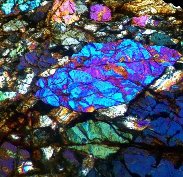 Хондра в шлифе метеорита в поляризационном микроскопе