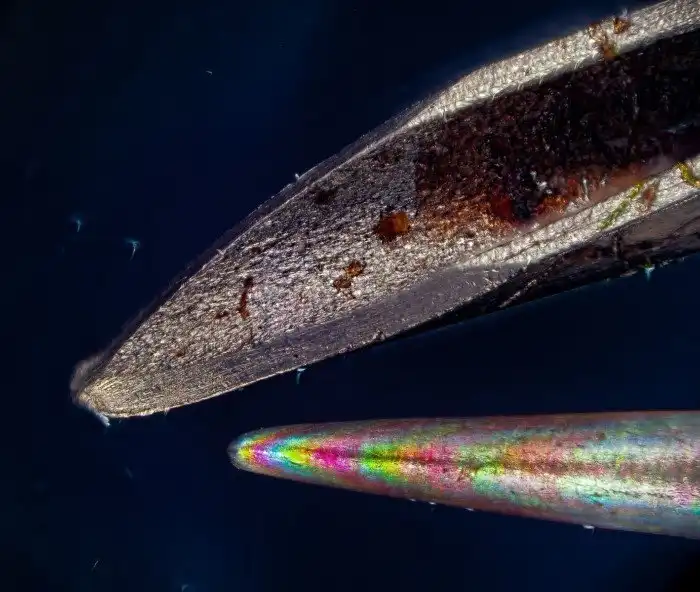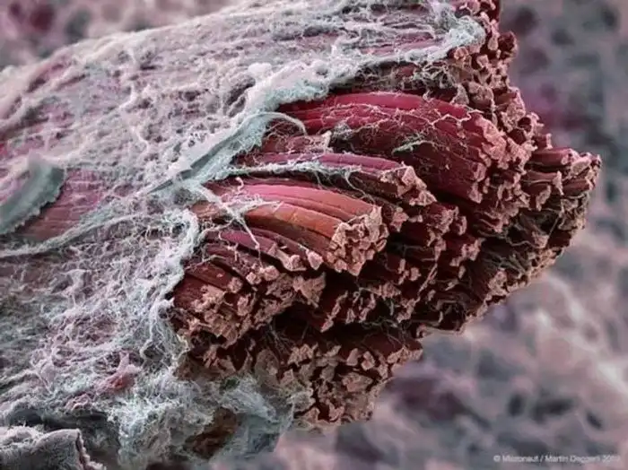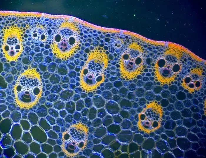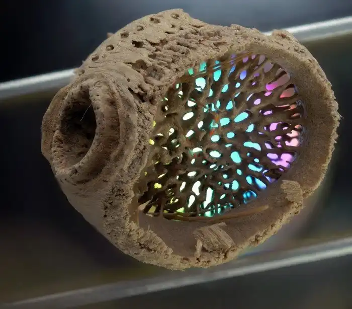 Панцирь диатомовой водоросли под микроскопом в максимальном оптическом увеличении