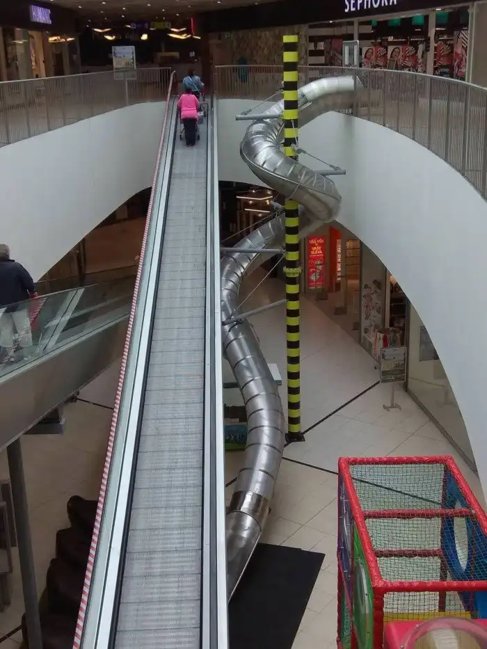 Эта горка является альтернативой эскалатору, потому что иногда взрослым просто нужно расслабиться