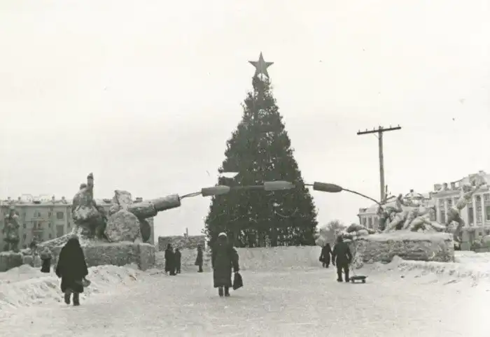 7. Омск, 1942 год. новогодний ледовый креатив военного времени.