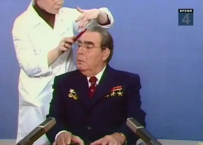 27. Конец 70- х гг. 20 века, Леонида Ильича Брежнева эстетизируют перед телевизионной записью.