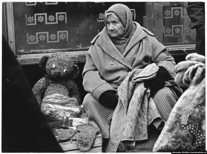35. Пожилая женщина и плюшевый медведь. Фото 1980 года называется Тяжелые времена