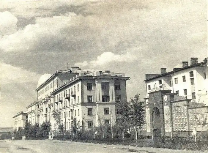 33. Новосибирск. Улица Станиславского.1946 г. Сталинки сданные в 1941 и 1943 годах. Самый правый дом - один самых старых домов первого соцгорода построенный в 1931 г