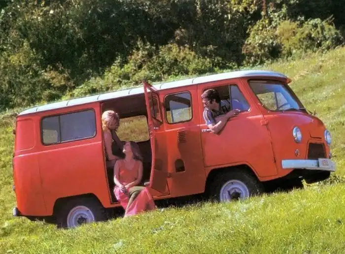 24. Советская рекламная съемка автомобиля УАЗ-452, известного в народе как Буханка