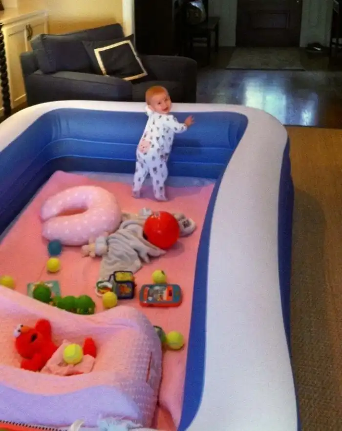 Если ребёнок пользуется ходунками, используйте нудл для бассейна, чтобы защитить стены и свои лодыжки