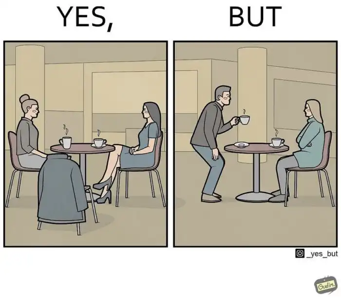 Российский иллюстратор Антон Гудим — мастер абсурда, иронии и черного юмора. Его работы идеально передают нелепость современного общества и высмеивают то, что мы давно уже привыкли считать нормой. Через призму юмора и иронии Антон затрагивает в серии "Да, но" такие темы, как потребительство, человеческие привычки, экология и другие.