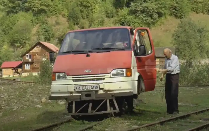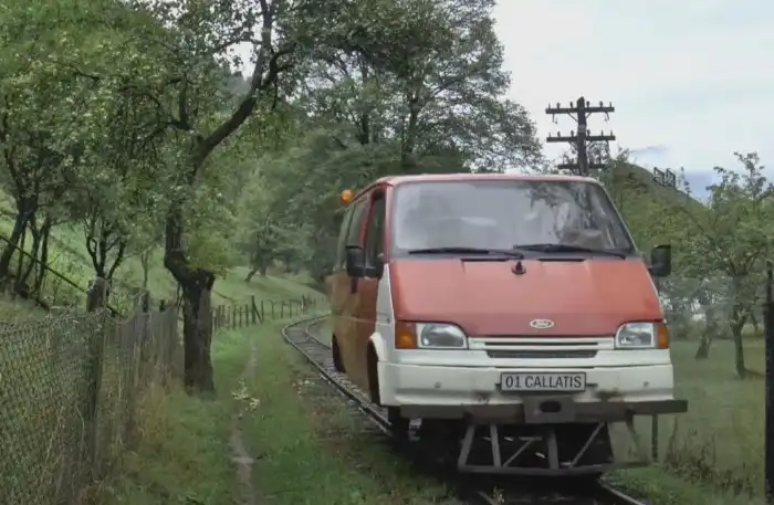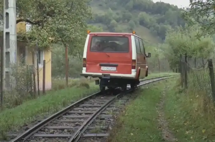 Сейчас один из местных жителей покажет, как нужно разворачивать этот железнодорожный Форд Транзит, чтобы не включать заднюю.