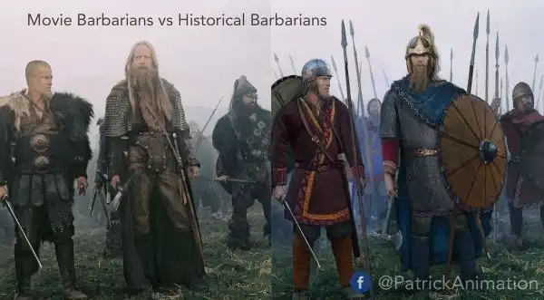 Патрик убрал большую часть кожи и меха и одел героев в более подходящие наряды. Одному из воинов он добавил шлем шпангельхельм, а другому — шлем Шорвелла, который был найден возле одноимённой английской деревни.
