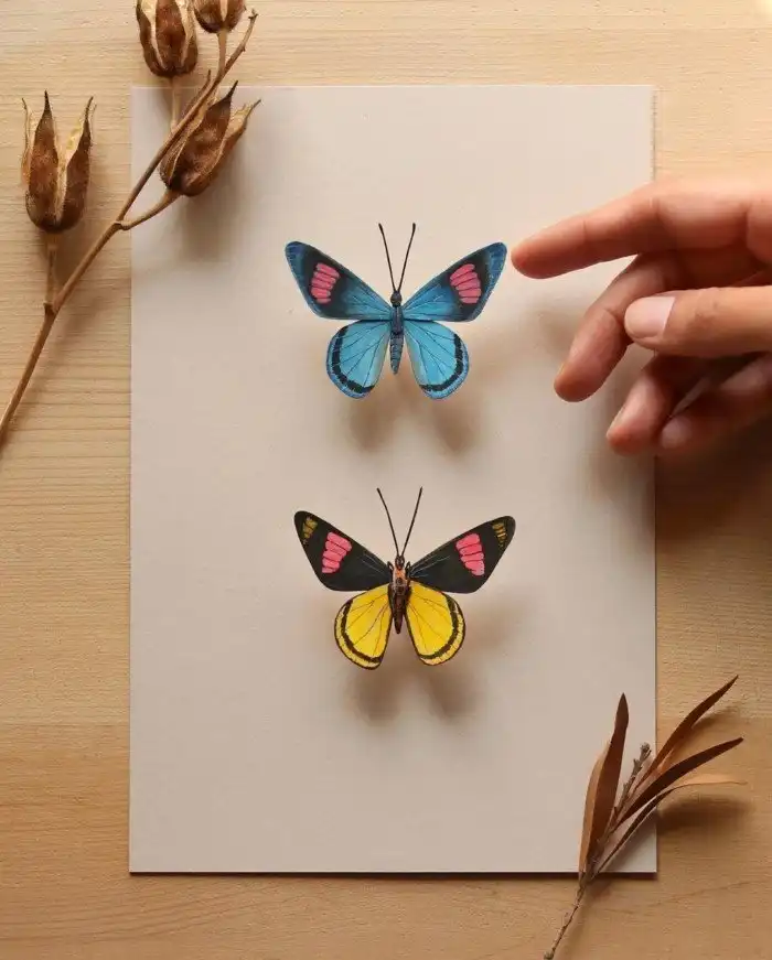 Эти животные могут выглядеть реальными, но это крошечные бумажные произведения искусства, повторяющие формы животных. Создали этих существ художники-любители природы Найан Шримали (Nayan Shrimali) и Вайшали Чудасама (Vaishali Chudasama), живущие в Индии.