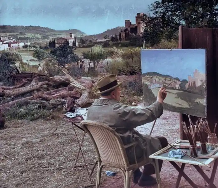 13. Уинстон Черчилль пишет пейзаж. Франция, 1948 год