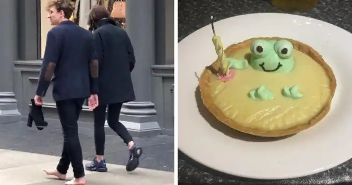 Этот парень отдал девушке свои ботинки, так как её обувь натёрла её ноги
