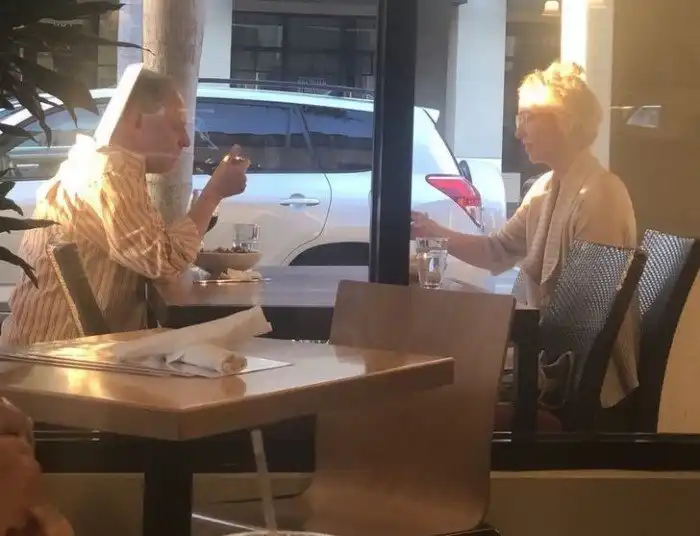 Девушке в глаза светило солнце, и её спутник придумал вот такую конструкцию с меню
