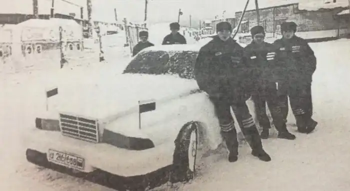 Ледяной белоснежный "Мерседес" и вылепившие его заключенные. Январь 2003 года