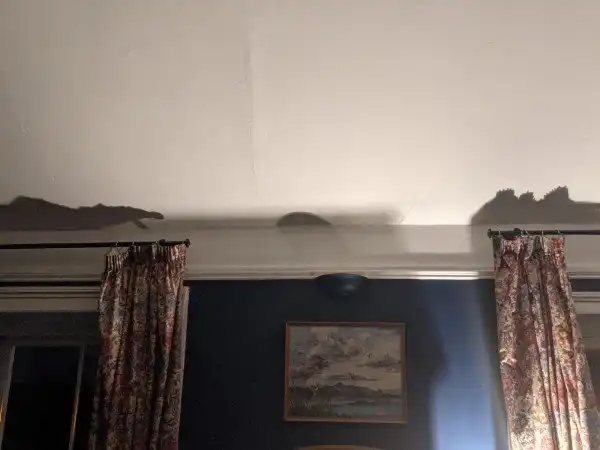 4. "Тень от занавесок похожа на дракона (слева), который нападает на деревню (справа)"