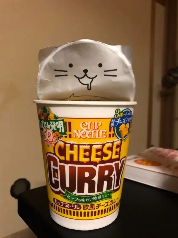 7. "Лапша быстрого приготовления с крышкой в виде котика, который приветствует тебя, когда ее открываешь"